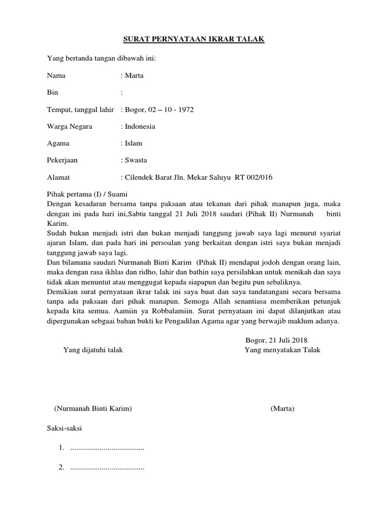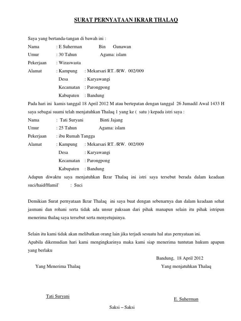 Contoh Draft Surat Ikrar Talak Pernyataan Talak from 1.bp.blogspot.com Check spelling or type a new query. Maybe you would like to learn more about one of these? We did not find results for: